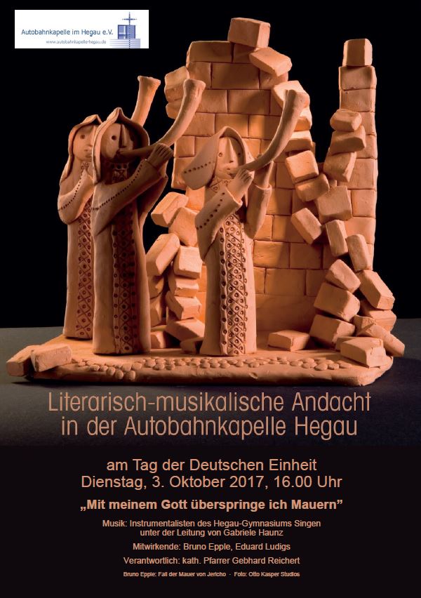Unter dem Motto „Mit meinem Gott überspringe ich Mauern“ wirken Instrumentalisten des Hegau-Gymnasiums Singen unter der Leitung von Gabriele Haunz bei der Feier mit. Texte und Gesänge werden von Eduard Ludigs und Bruno Epple vorgetragen. Geleitet wir die Feier von Pfarrer Gebhard Reichert.