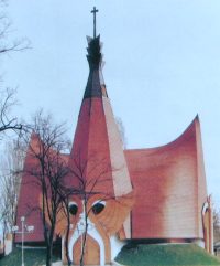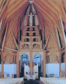 "Der Bau dieser Kirche begann noch zur Zeit der russischen Besetzung. Durch die Unterstützung der Lutheranischen Gemeinde von Oulu (Finnland) konnte sie aus finnischer Fichte gebaut werden. Unsere finnischen Brüder stifteten auch das Mobiliar. Der Bauprozess wurde von Márton Yózsa, dem Pfarrer der Gemeinde, begleitet. Die finanzielle Grundlage wurde durch den Verkauf des Hauses, in dem man früher für religiöse Feiern zusammenkam, geschaffen. Wie auch in Paks arbeitete die Gemeinde bei der Errichtung des Gebäudes mit." Imre Makovecz |