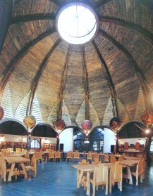 "Ich denke, dass es die Pflicht jedes Gebäudes ist, Schutz gegen die vielen Angriffe der äußeren Welt zu bieten, gegen Regen und Wind, gegen Kälte und die vielen Arten von Strahlung, die sowohl positiv wie negativ sein kann An diesem Schutz ist nichts Besonderes. Aber es macht einen großen Unterschied, ob dieser Schutz durch eine flache, stahlverstärkte Betondecke oder - wie im Fall des Kulturhauses im Wald von Visegrád - durch eine Kuppel erfolgt, die mit Blattwerk verzierte Säulen und Tierkreiszeichen aufweist. Diese